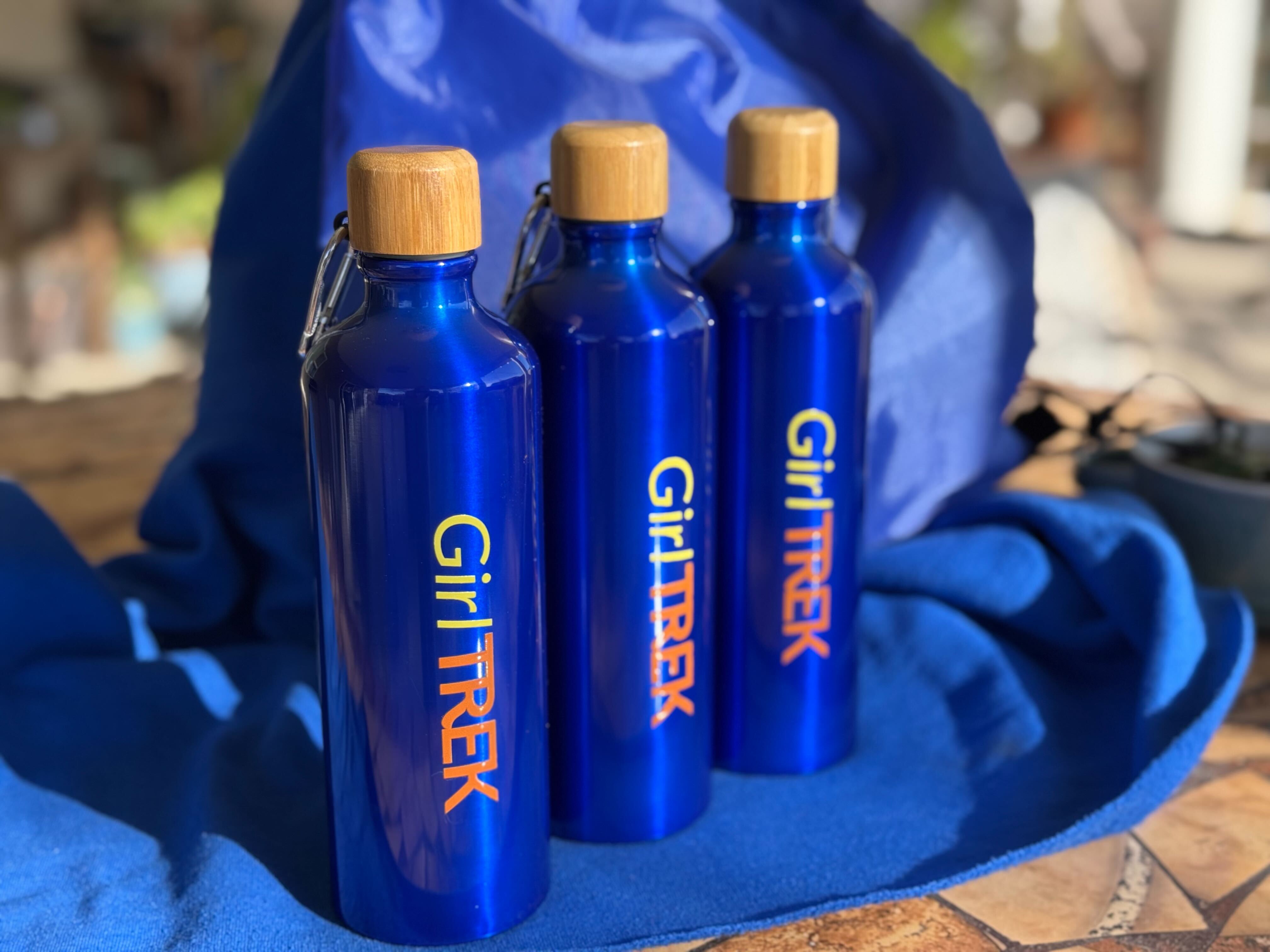 Represent GirlTREK and hydrate along the way of your trek with this Vibrant Blue eco-friendly aluminum water bottle with bamboo lid. Great for the beach or environments that prohibit glass and plastic!